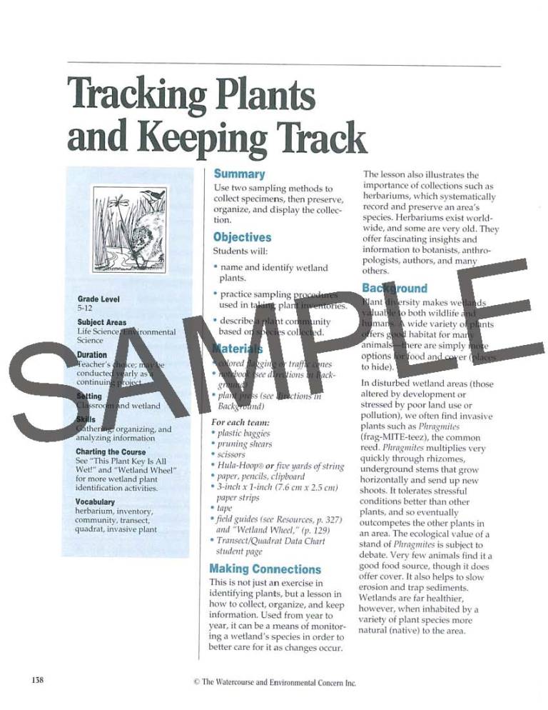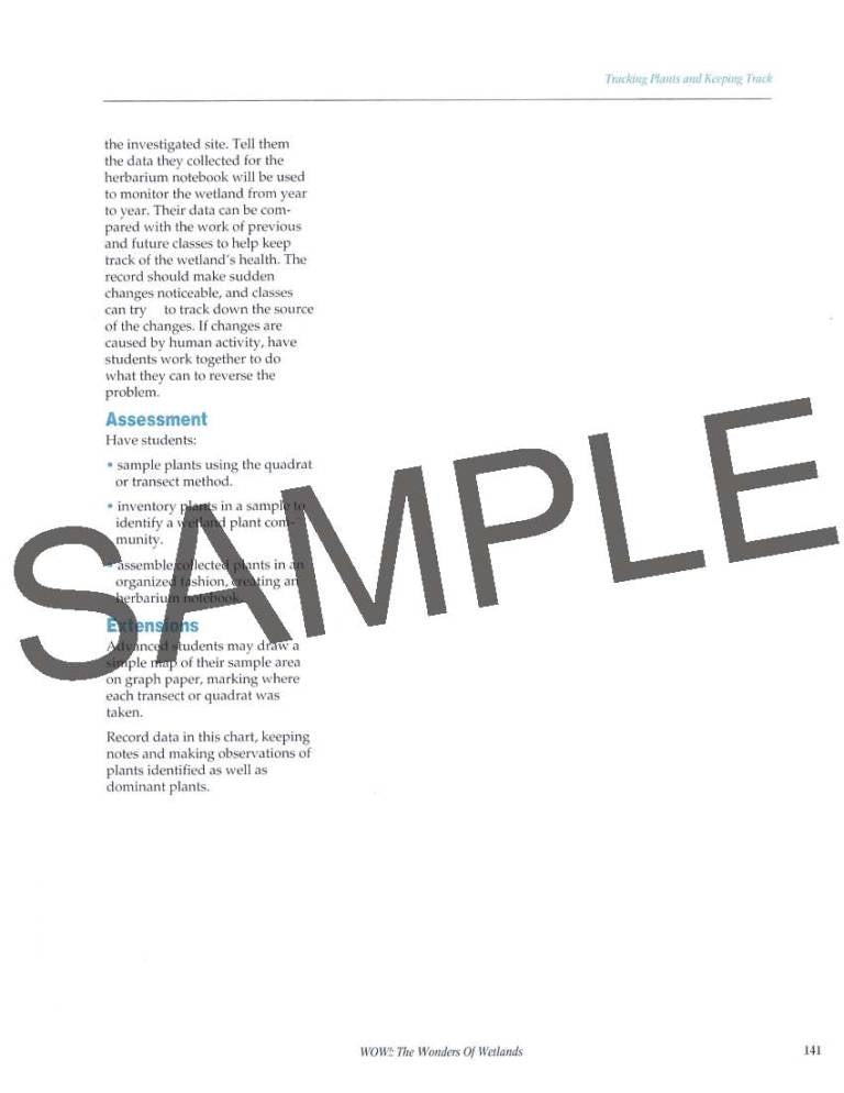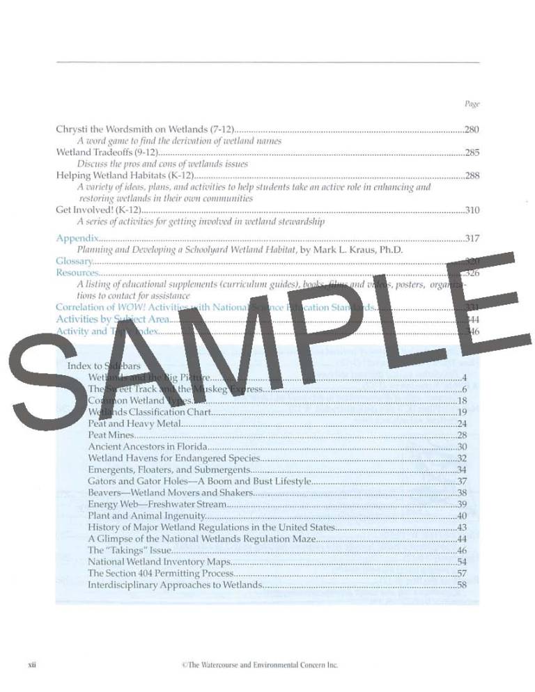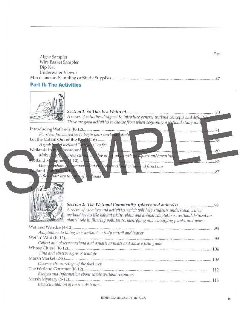 Every page is laid out with informative text, stunning photography, along with easy-to-read sidebars, maps and illustrations. Activities are neatly organized into five sections: wetlands definitions, wetlands plants and animals, water quality and supply issues, soils, and people. The appendix also provides instructions for planning and developing a school yard wetland habitat.
